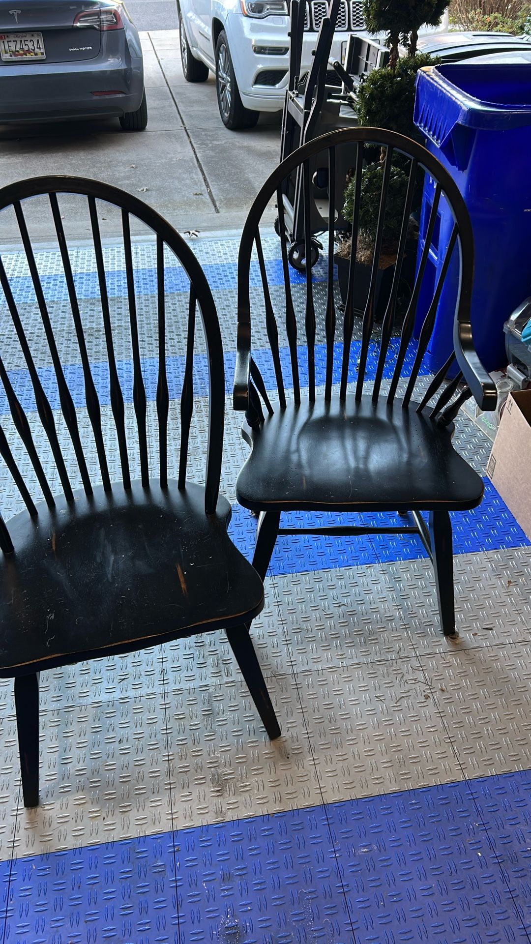 I have (2) of the armchairs and (4) side chairs. Can be painted as a fun project so me have some wear. Otherwise solid wood and in good condition!