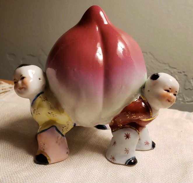 Vintage Ceramic / porcelain longevity peach figurine Represents- longevity of family and the future. Used to Attract good fortune, good health and long life Very collectible