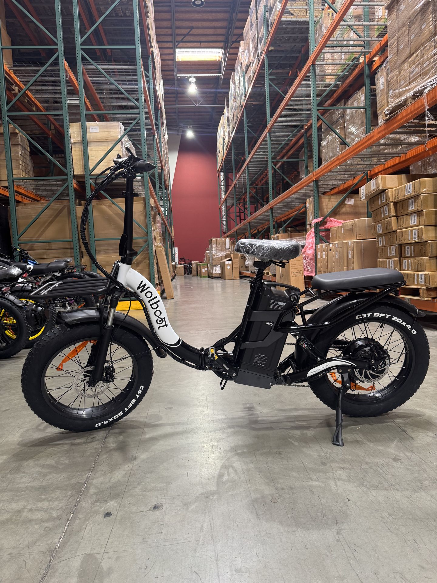 The high-performance electric bicycle of WOLBOOT brand. It is equipped with a powerful 1200W motor with a maximum speed of 36MPH. Equipped with a 60V 40AH waterproof lithium battery, the range in pedal-assisted mode can last more than 100 miles. The design adopts front and rear double suspensions, shock-absorbing seatpost, and 20" x 4.0" non-slip and anti-puncture wide tires, which are suitable for a variety of terrains. In terms of safety, it is equipped with 180mm front and rear hydraulic disc brakes.