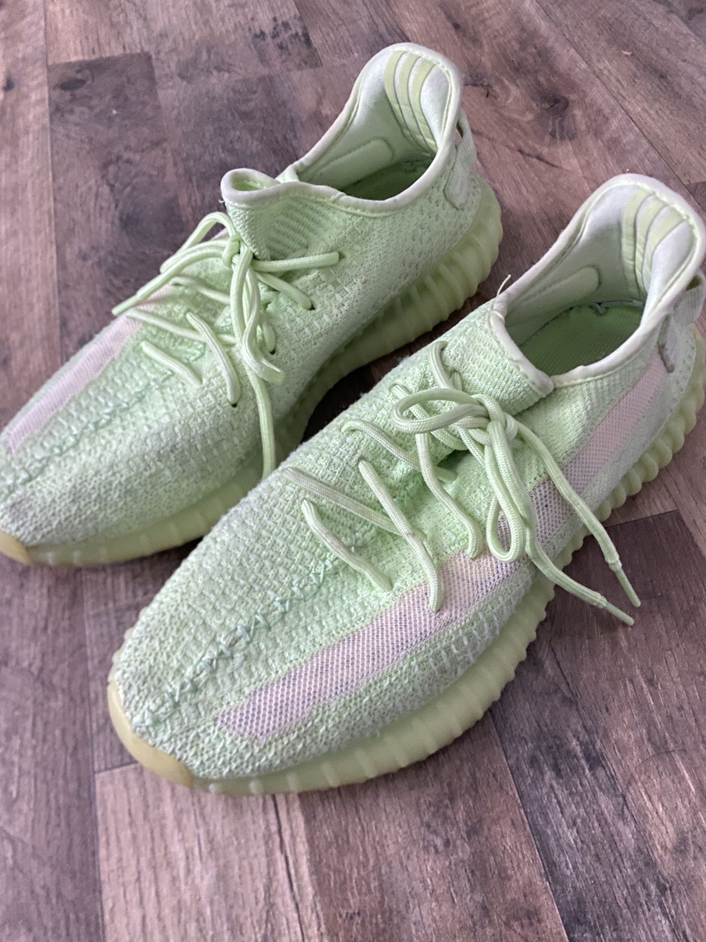 Used adidas Yeezy boost 350 v2 light green color way. Good condition, clean uppers and plenty of life left in soles. No box, 100% authentic. Super comfortable and great everyday sneaker