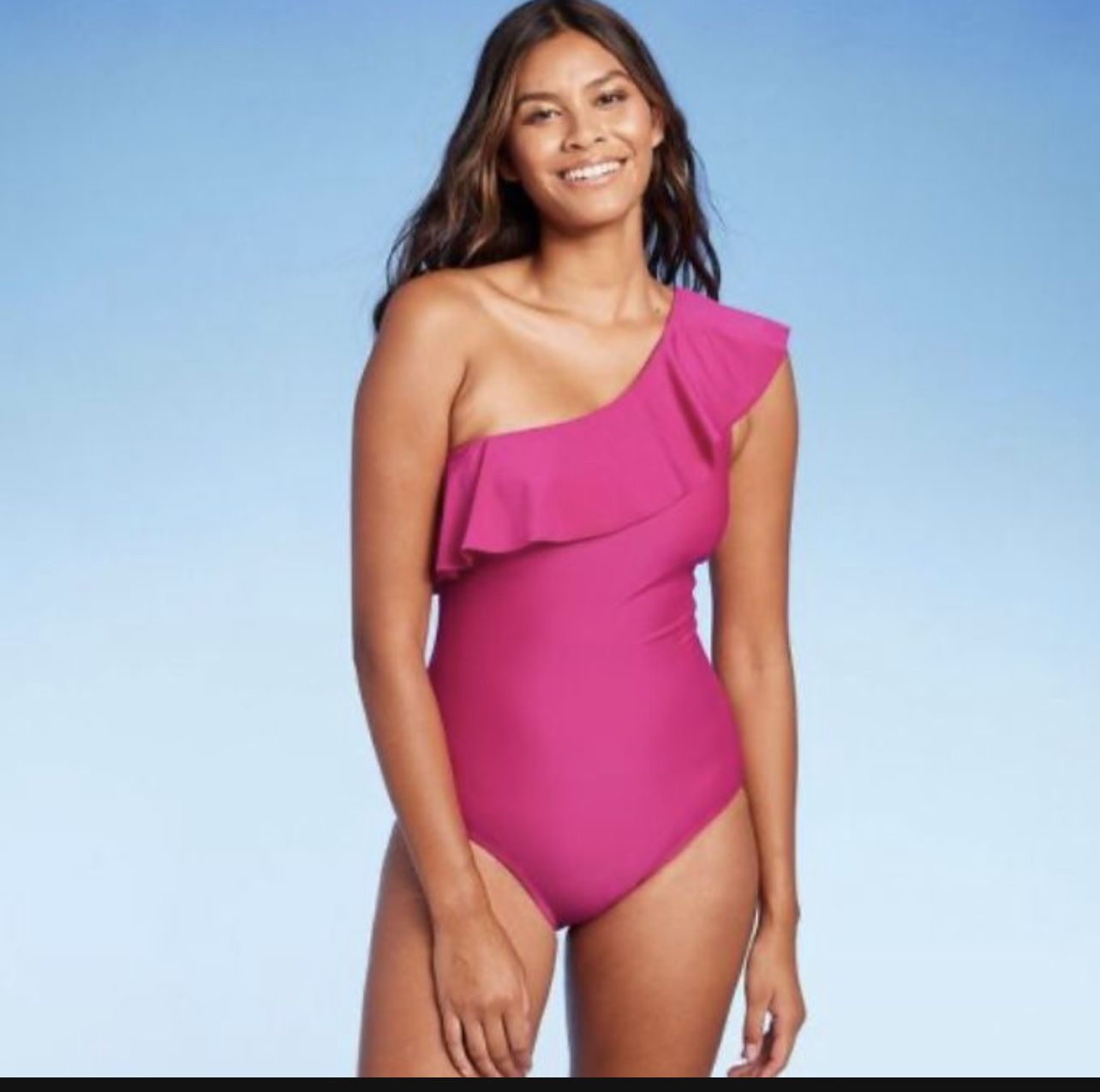 Kona Sol Pink Ruffle Shoulder One Piece Swimsuit Full Coverage Junior’s Size 17