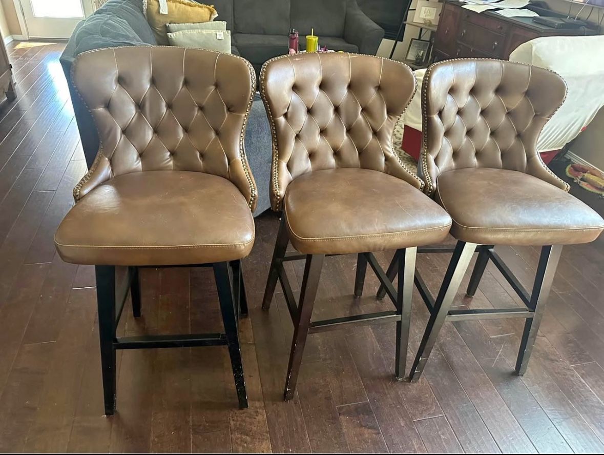 3 Cozy Leather Chairs (OBO) (in great condition)