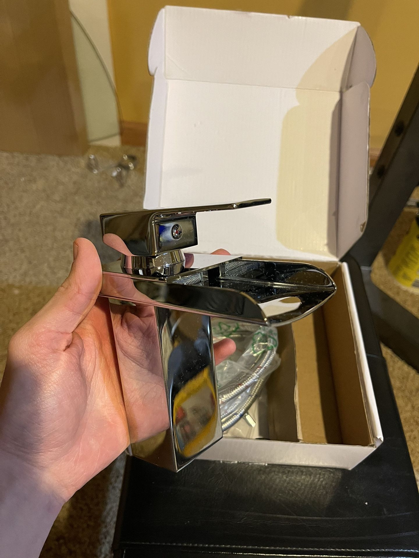 New in box, Bathlavish waterfall bathroom deck mount lavatory lead-free faucet.
