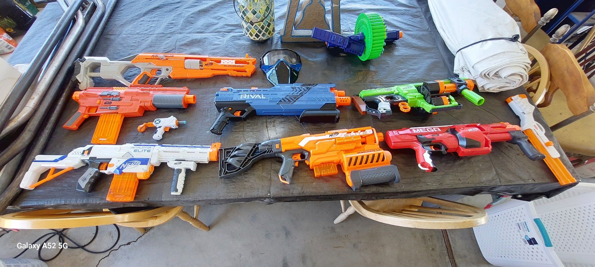 My sons Nerf guns... All work... except the one in last pic... but all work.. some are battery operated... most have some nerf bullets ...1 safety mask... $40 obo for All