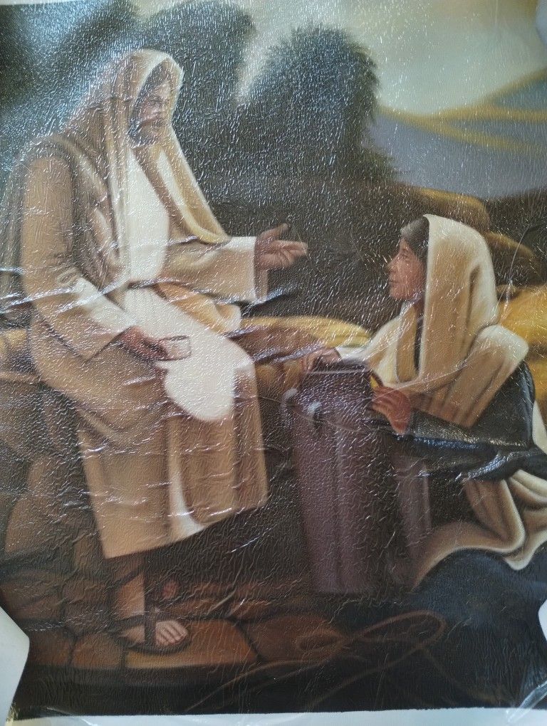 Selling this 39.5" x 27.5" oil painting of Jesus Christ. Does not include a picture frame. This painting is in great condition! The wrinkles and creases are the protective plastic film covering the art piece. Make me an offer
