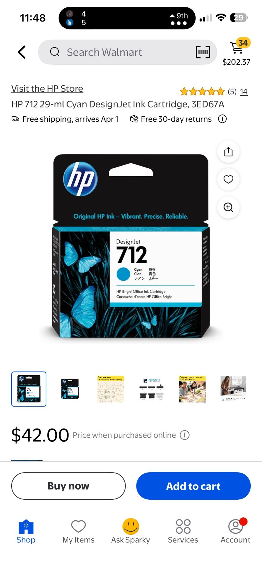 HP 712 (29 ML) $22 Cyan