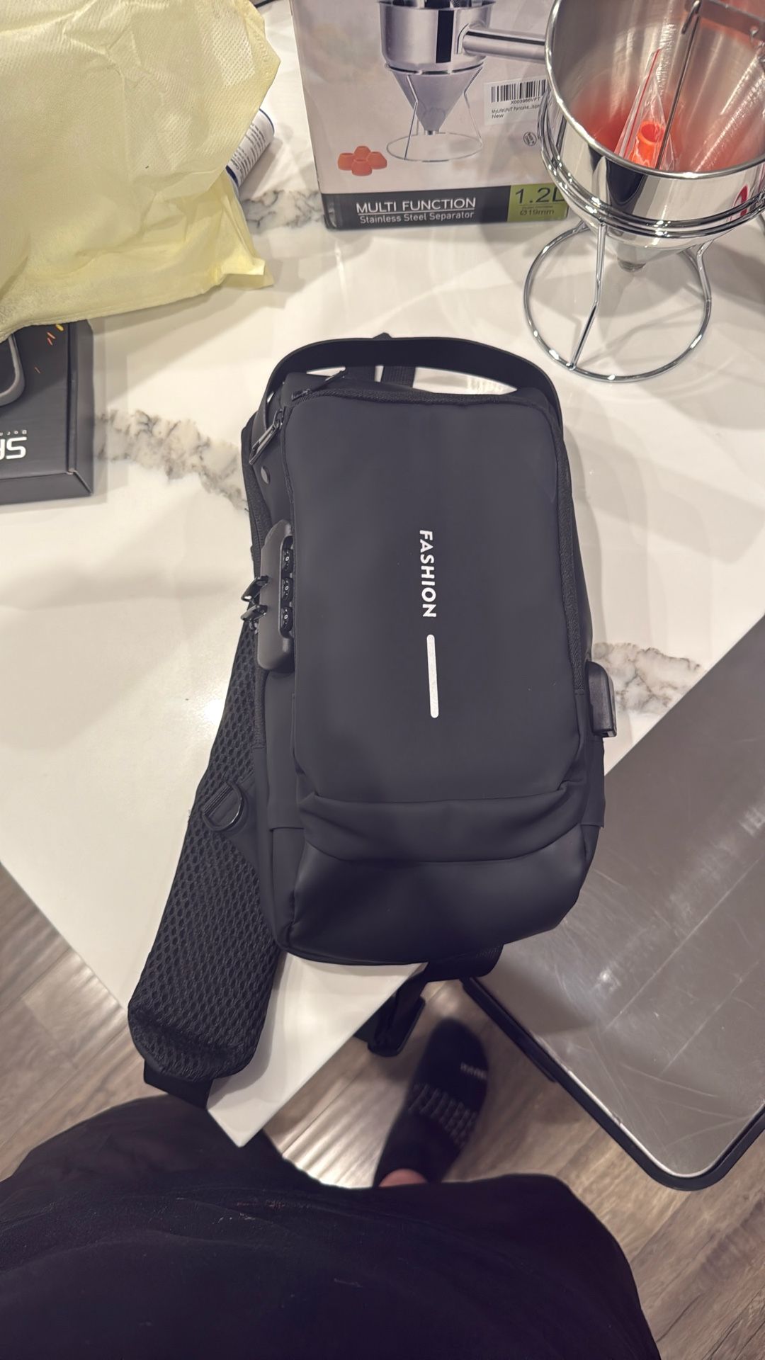 Brand new cross body travel bag. Was a lockable compartment with a charging port.