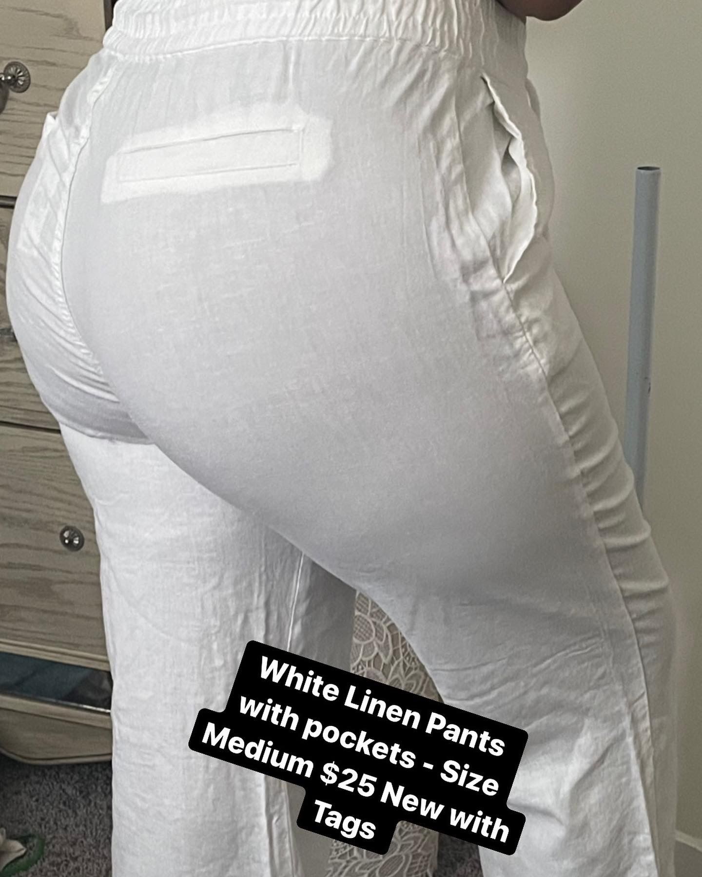 White Linen Pants with pockets - Size Medium $25 New with Tags #linen #pants #charboutiques #explore #explorepage #reels #share #shop