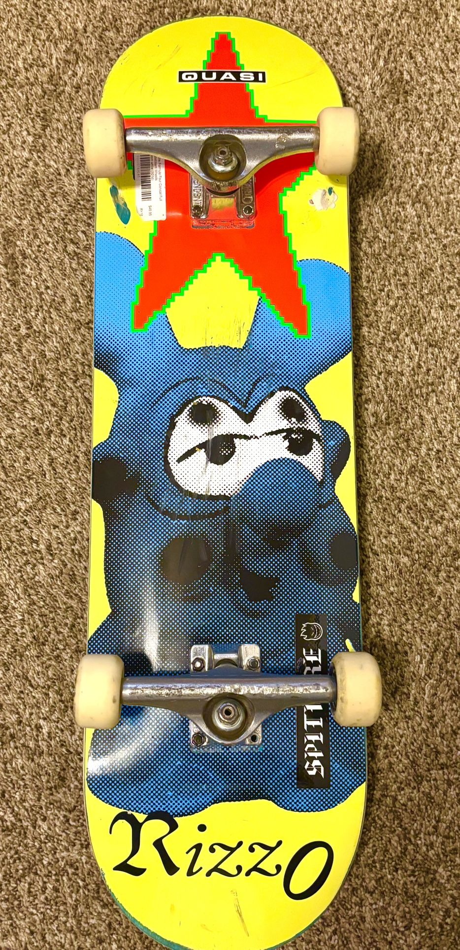 Grip Tape bad but FRESH Mob Grip. Skated this Quasi board only twice. Still has fresh pop and comes with Independent Trucks (149).