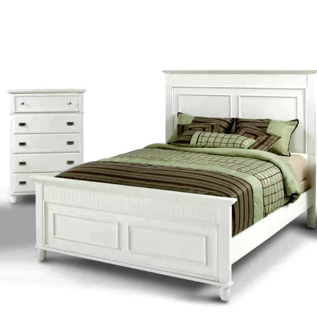 I am selling 3pc queen bedroom set $499 Included: 1. Queen bed farm 2. Queen mattress 3. 5 drawer chest top-lift Sold Separately price: Queen bed frame sz. 66"W x 87"D x 61"H $249.99 5 draw chest dresser with top-lift sz. 36"W x 17"D x 52"H $249.99 Queen mattress with box $199.99 OR BEST OFFER