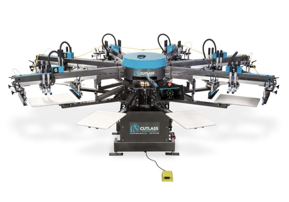 10 station 8 color Automatic workhorse cutlass printer. Comes with large conveyor belt dryer, flash dryer and compressor. Asking $30k Located in downtown San Diego. Let me know if you are interested, you are more than welcome to stop by and look at it M-F 10am to 4:30pm