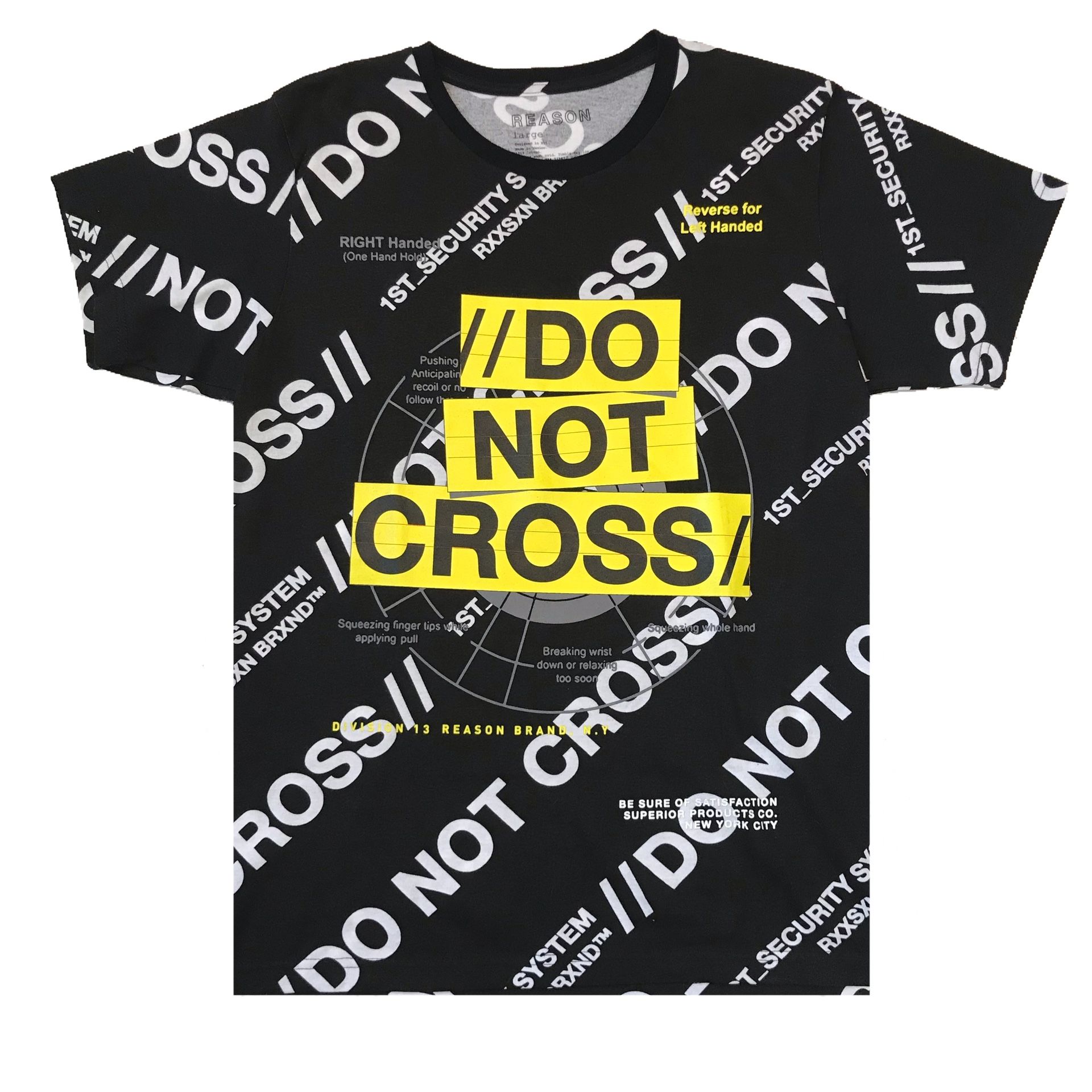 Men’s black “Do Not Cross” t-shirt. Sizes Medium and Large.