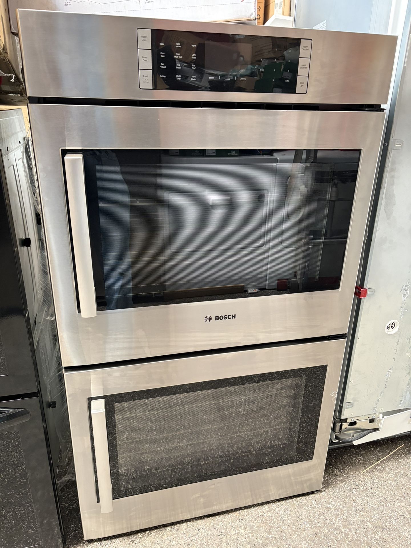 Open box Pick up Costa Mesa Delivery services available Bosch Benchmark Series 30 Inch Double Convection Electric Wall Oven with 4.6 cu. ft. Capacity Right Hinge Door Swing Stainless steel Model: HBLP651RUC Retail $5949