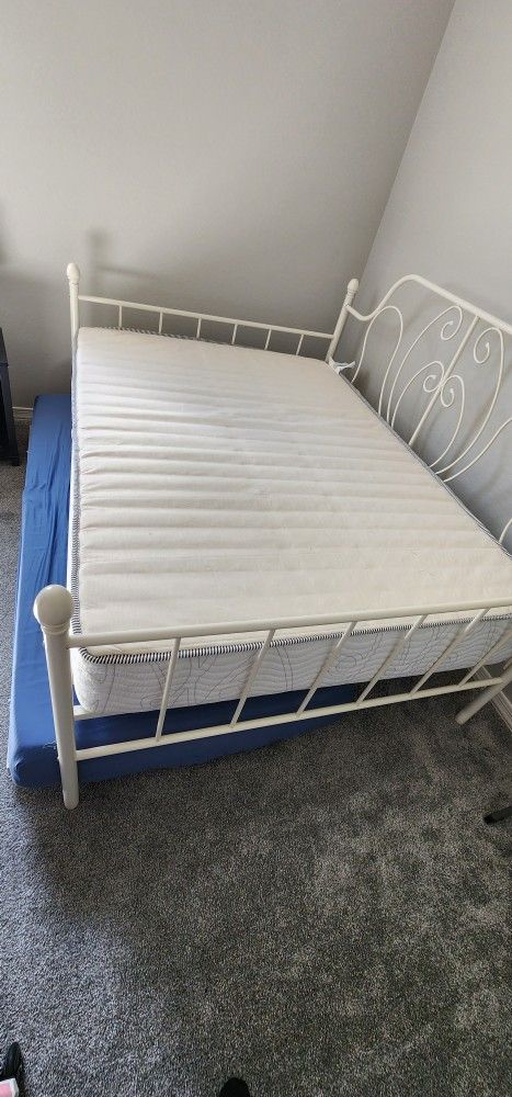 This daybed has been rarely used and remains in excellent, like-new condition. It was primarily kept in a guest room and used only a handful of times, which shows in its clean lines and well-maintained appearance. The frame is sturdy and solid with no squeaks, cracks, or wobbling, and all joints and hardware are fully intact. Overall, this daybed has been well cared for in a smoke-free, pet-free home and looks nearly new. It’s perfect for a guest room, home office, or multipurpose space where style and function matter.