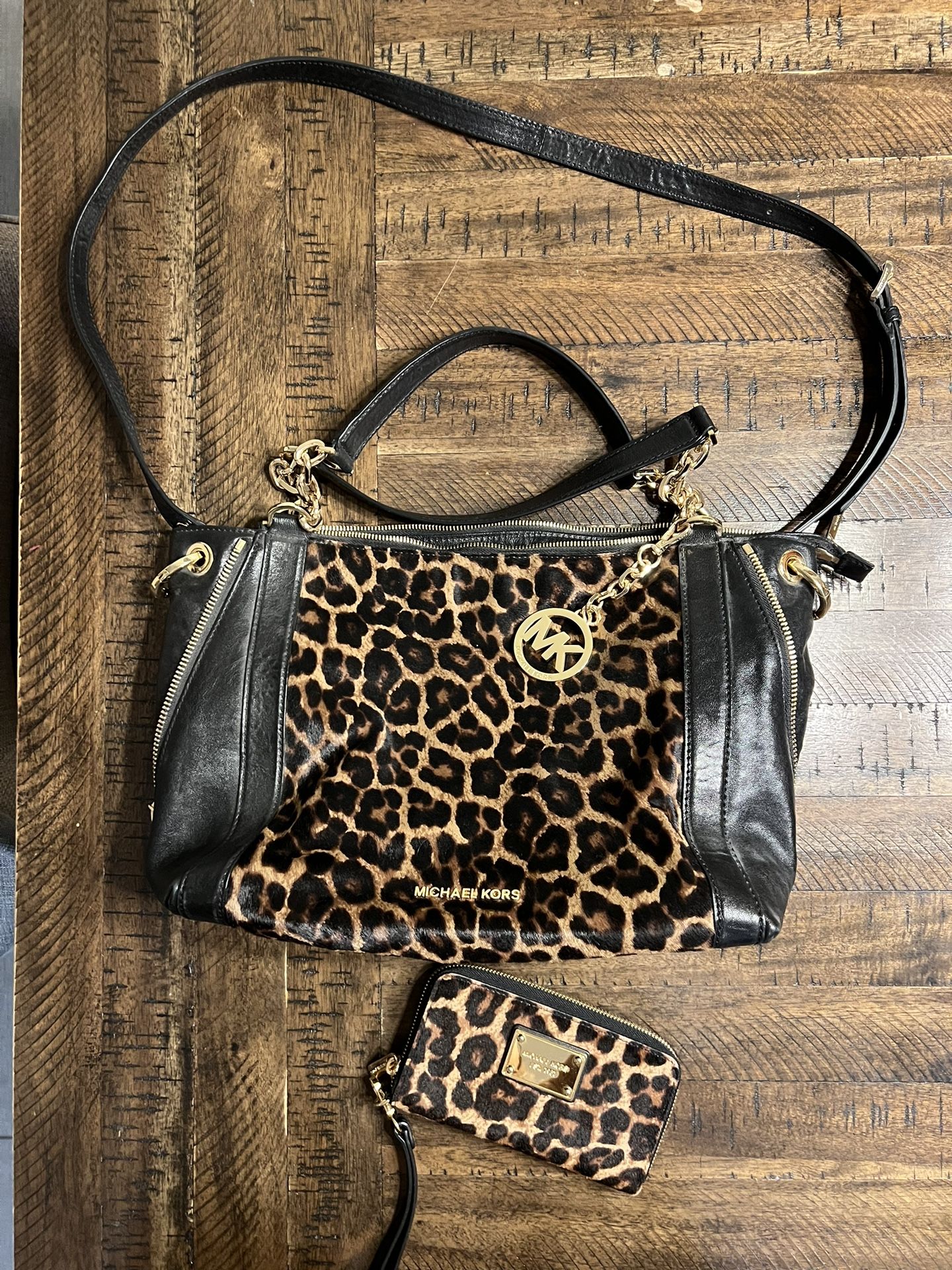 Authentic Large Michael Kors Haircalf Cheetah Print Bag With Matching Wallet. In perfect condition. No rips or stains. It’s just been sitting in my closet.