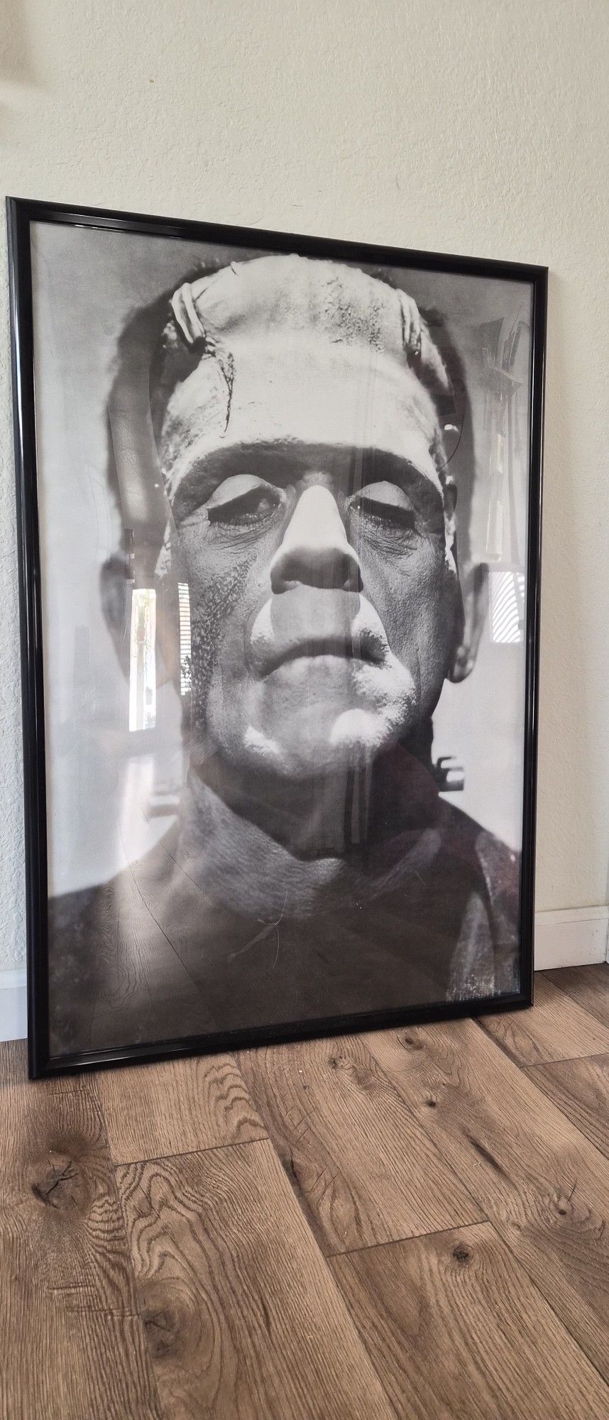 Approx. 24" x 36" Framed. Black Frame. No Chips, No scratches. Great Condition! Black & White Vintage Reprint Karloff as THE MONSTER from FRANKENSTEIN UNIVERSAL MONSTERS