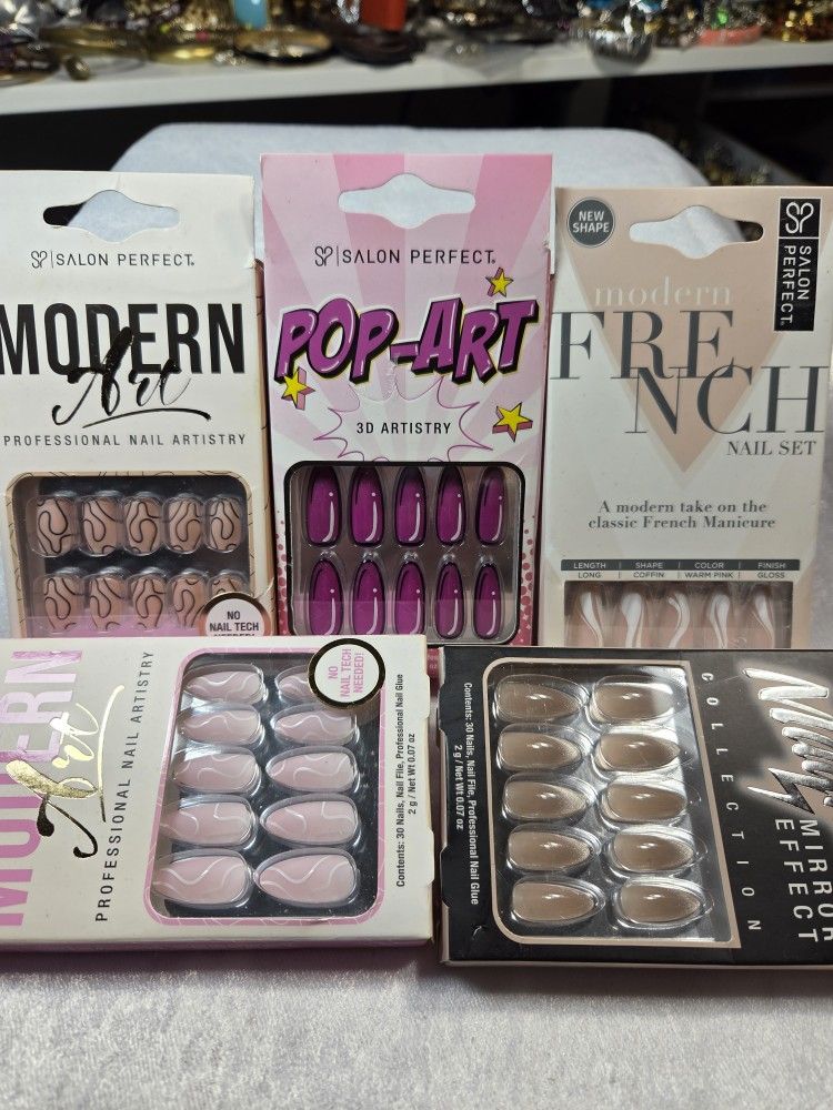 Bundle Of 5 press on nails. Nail art. Retails for 40.00. All 5 for only $12.00. Get them before they're gone!