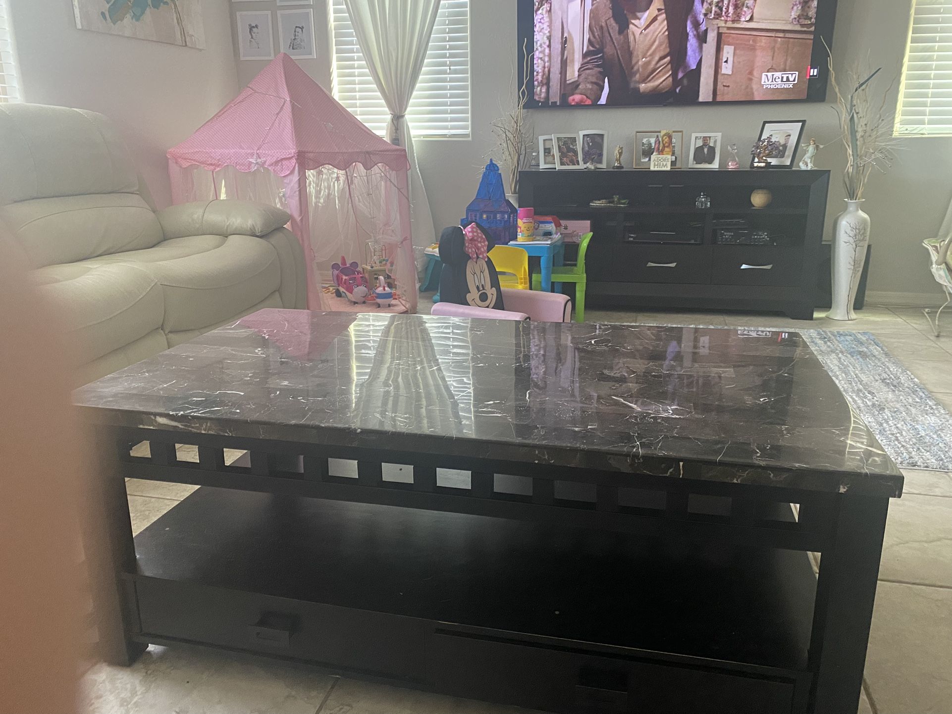 Heavy wood granite marble coffee table no scratches like new ! Beautiful condition