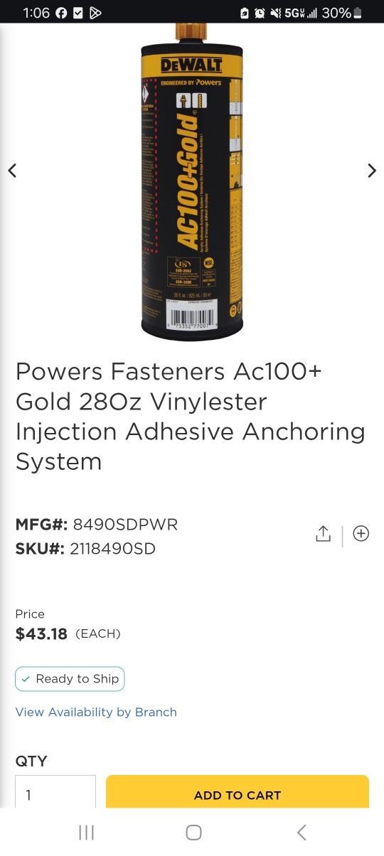 DEWALT Ac+GOLD ACRYLIC ADHESIVE ANCHORING SYSTEM