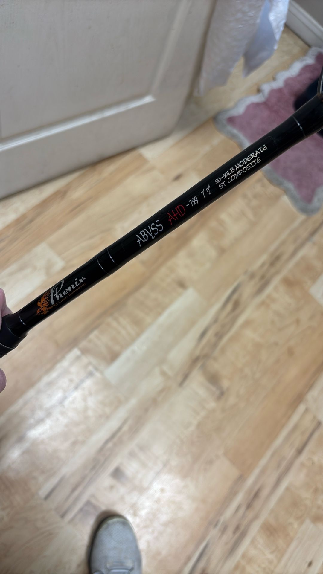 Phenix Abyss AHD-729 It’s a 7’2” rod, I’ve had its for a few years and mainly used it for rockfish, lingcod. It’s 20-50lb moderate ST Composite Asking 200obo