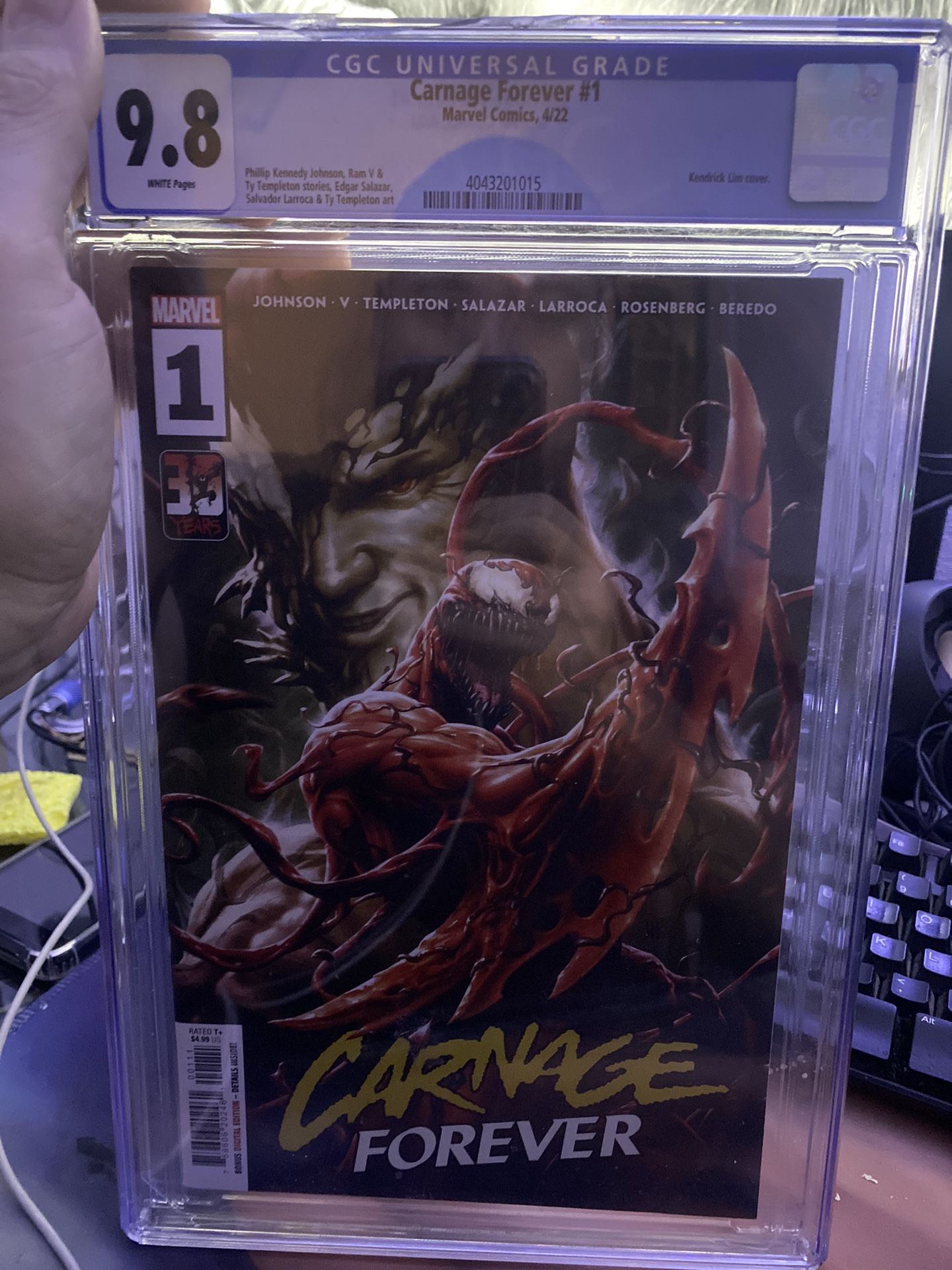 The graded 9.8 first edition carnage has a chip at the top.. I’m selling all for 50..