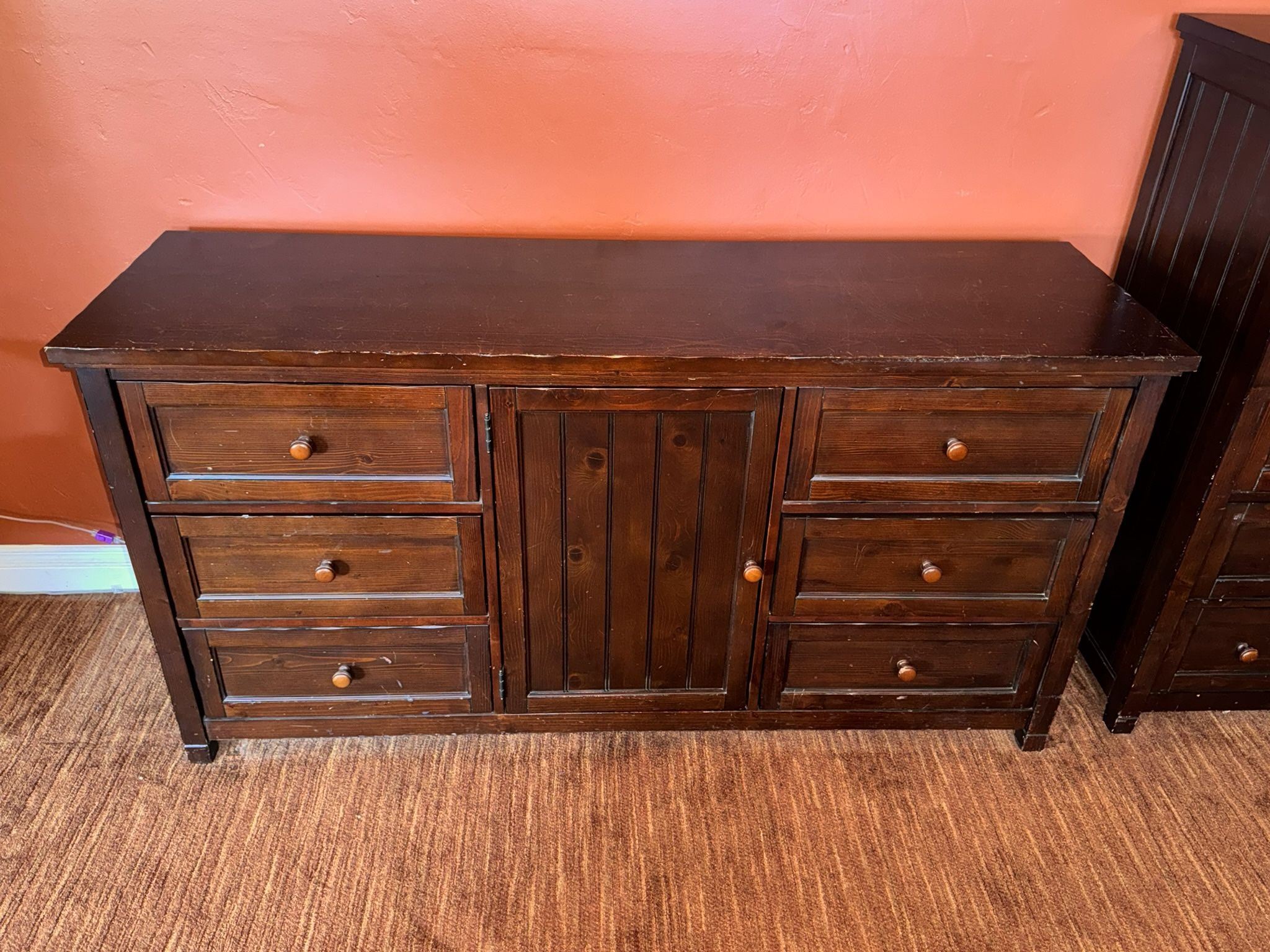 Hello I am selling a Pottery Barn Bedroom 6 Drawer Dresser. This dresser shows some wear and scratches on them as seen in the photos. You could sand this repaint and refinish this dresser no problem. I am the original owner of this bought this new from PotteryBarn in 2013. These are great for kids, teens, and adults. Great price get it while you can this deal it won't last forever. Great for new apartments, or new house without breaking the bank. Message me if your interested in this I also have another Pottery Barn Dresser for sale check out my page. Must go I am moving soon and these need to go I can’t take with me!!!