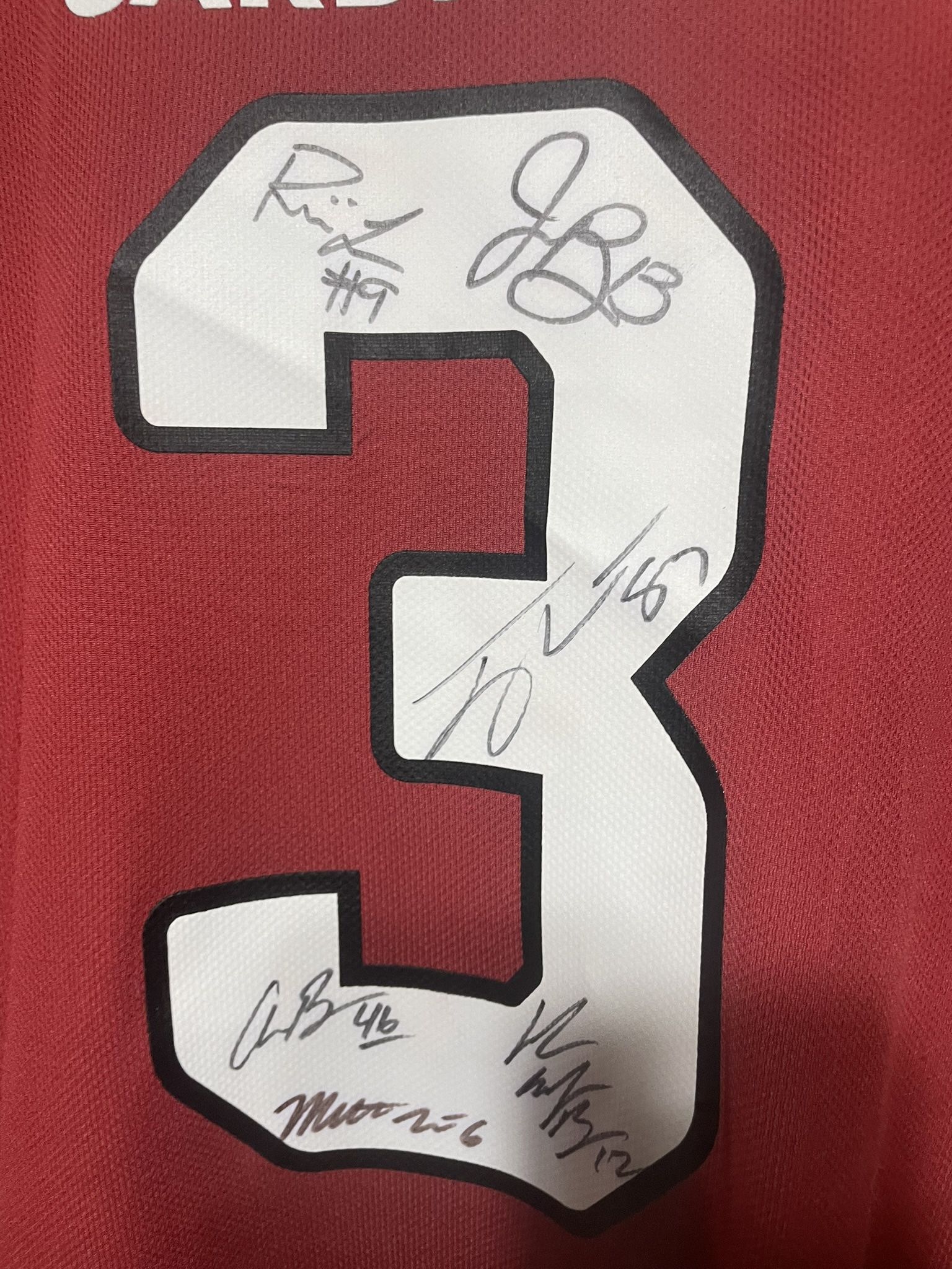 Cardinals jersey with signatures of multiple players the jersey number 3