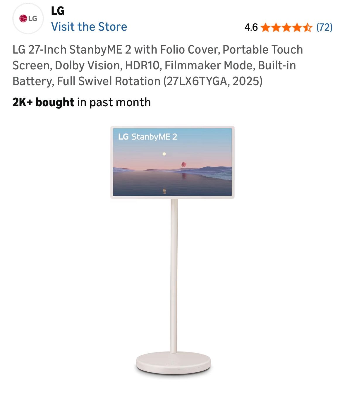 LG 27-Inch StanbyME 2 with Folio Cover, Portable Touch Screen, Dolby Vision, HDR10, Filmmaker Mode, Built-in Battery, Full Swivel Rotation (27LX6TYGA, 2025)