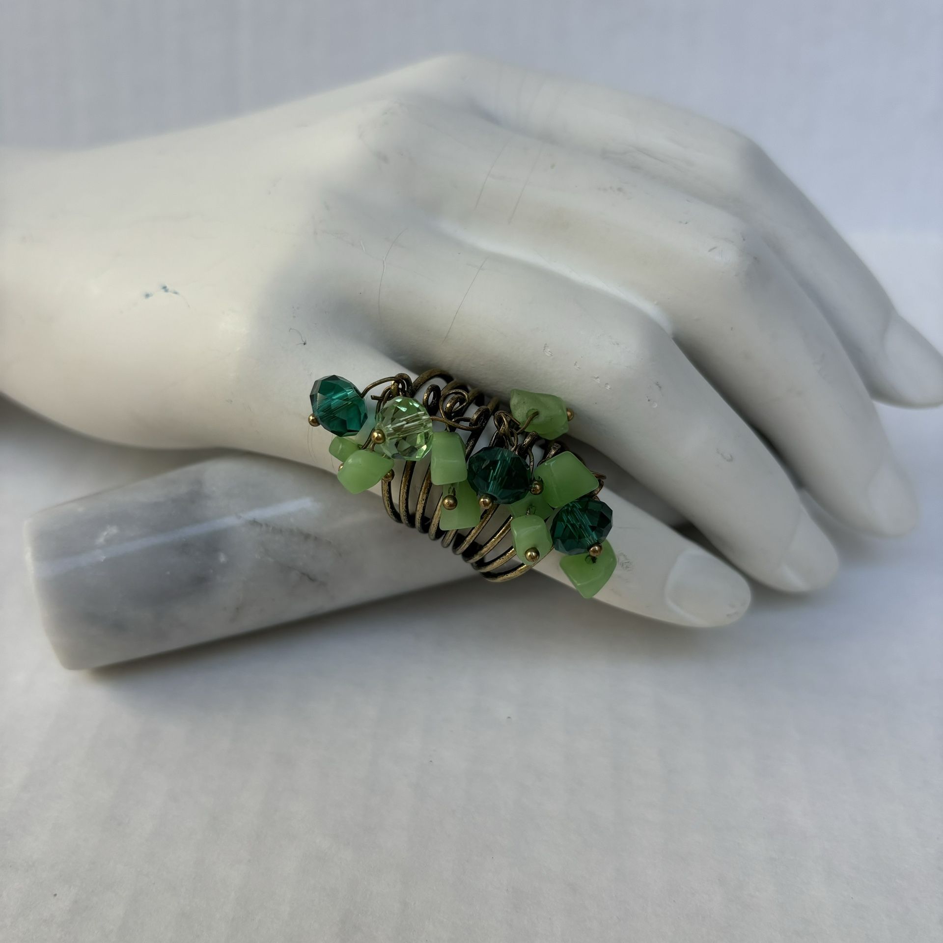 Green Beaded Ring Size 7.5