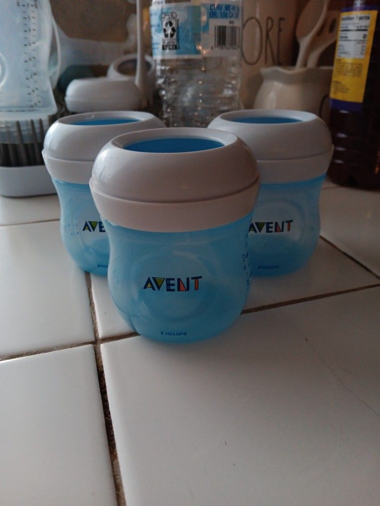 3 avent baby bottles, used for 3 months only. Does not have the lid or nipple. I have lots of baby stuff posted, I'll give you a great deal. And I have a changing table too.