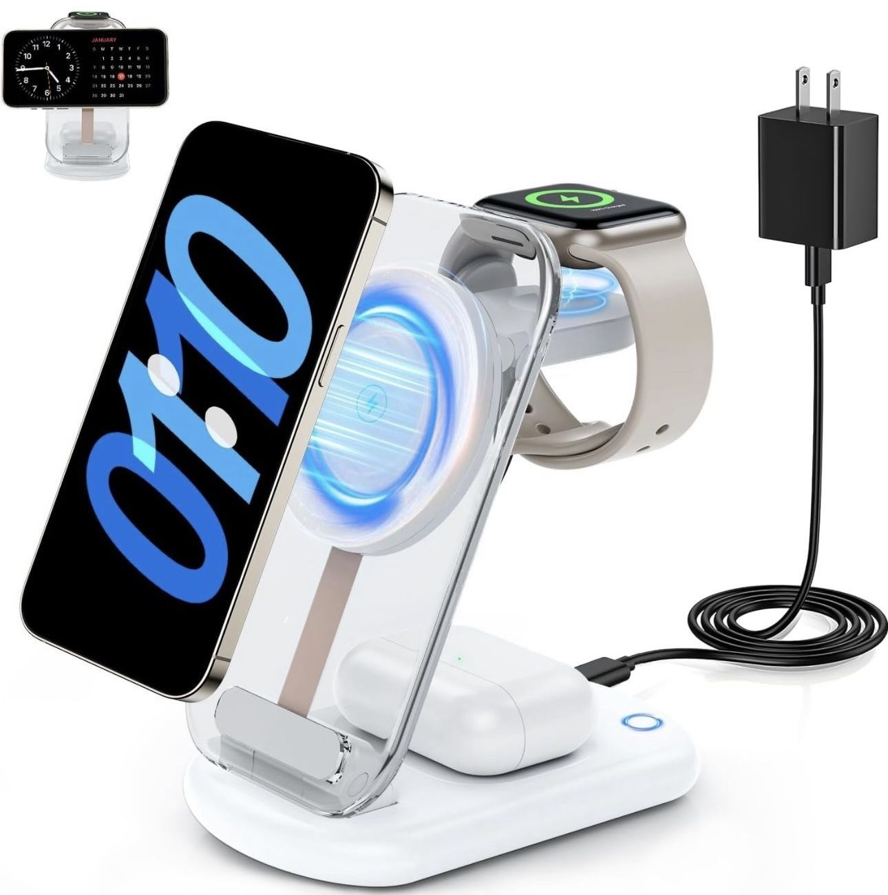 2024 Magnetic Wireless Mag-Safe Charger Stand,3 in 1 Fast Charger with Light for iPhone 16 15 14 13 12 Pro Max Plus,Charging Pad for Apple Watch Series & Air pods 3 2 Pro(White)