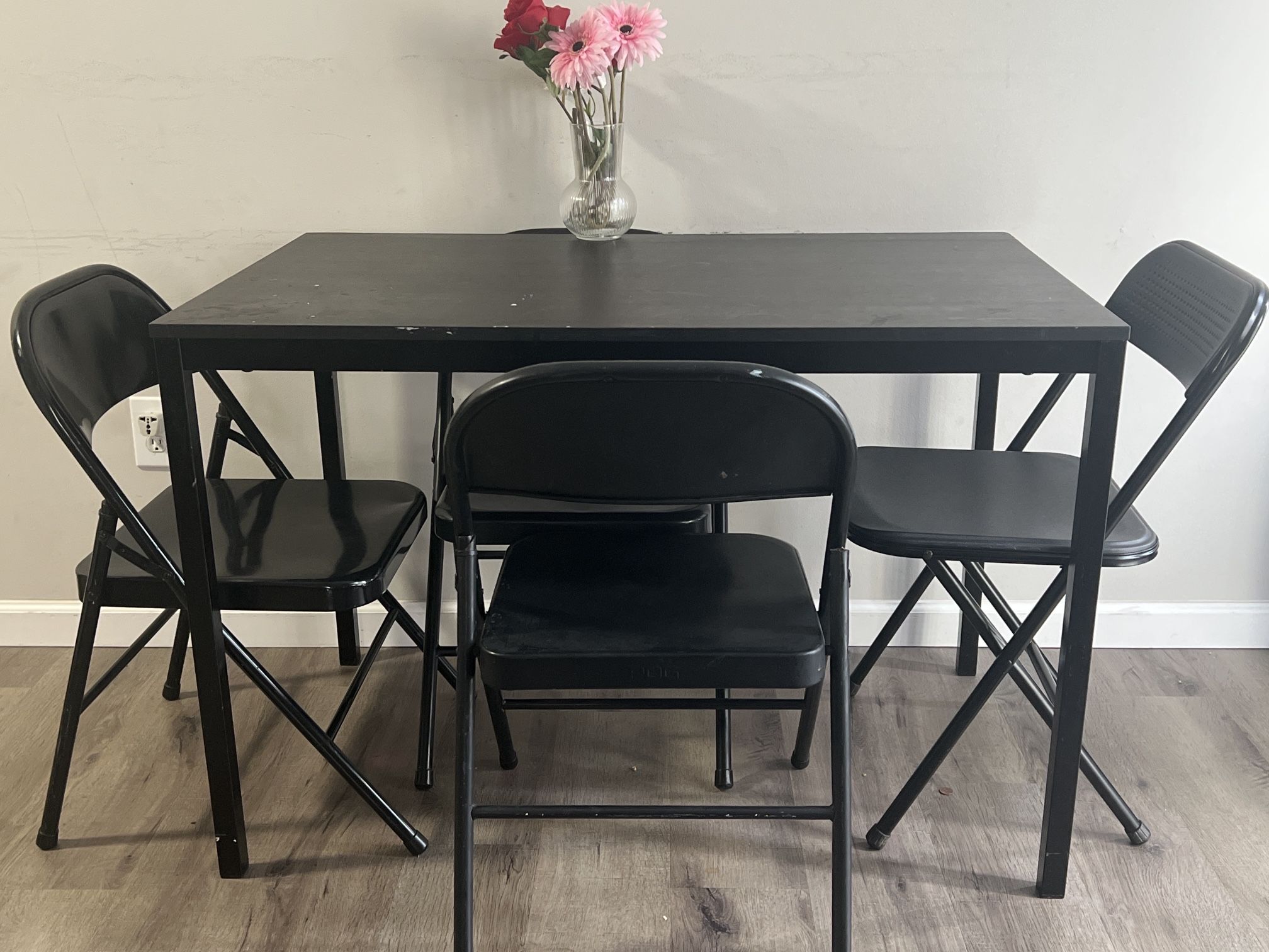 IKEA dining tables (2 count) with 4 foldable chairs included. • Sturdy table, clean and functional • Chairs fold for easy storage • Used, good condition • From a pet-free and smoke-free home Pickup only. Cash or Zelle accepted. No delivery. ⸻ Descripción (Español) Mesa IKEA con 4 sillas plegables incluidas. • Mesa firme y funcional • Sillas plegables para fácil almacenamiento • Usado, en buen estado • Hogar libre de mascotas y humo Solo recogida. Pago en efectivo o Zelle. No entregas.