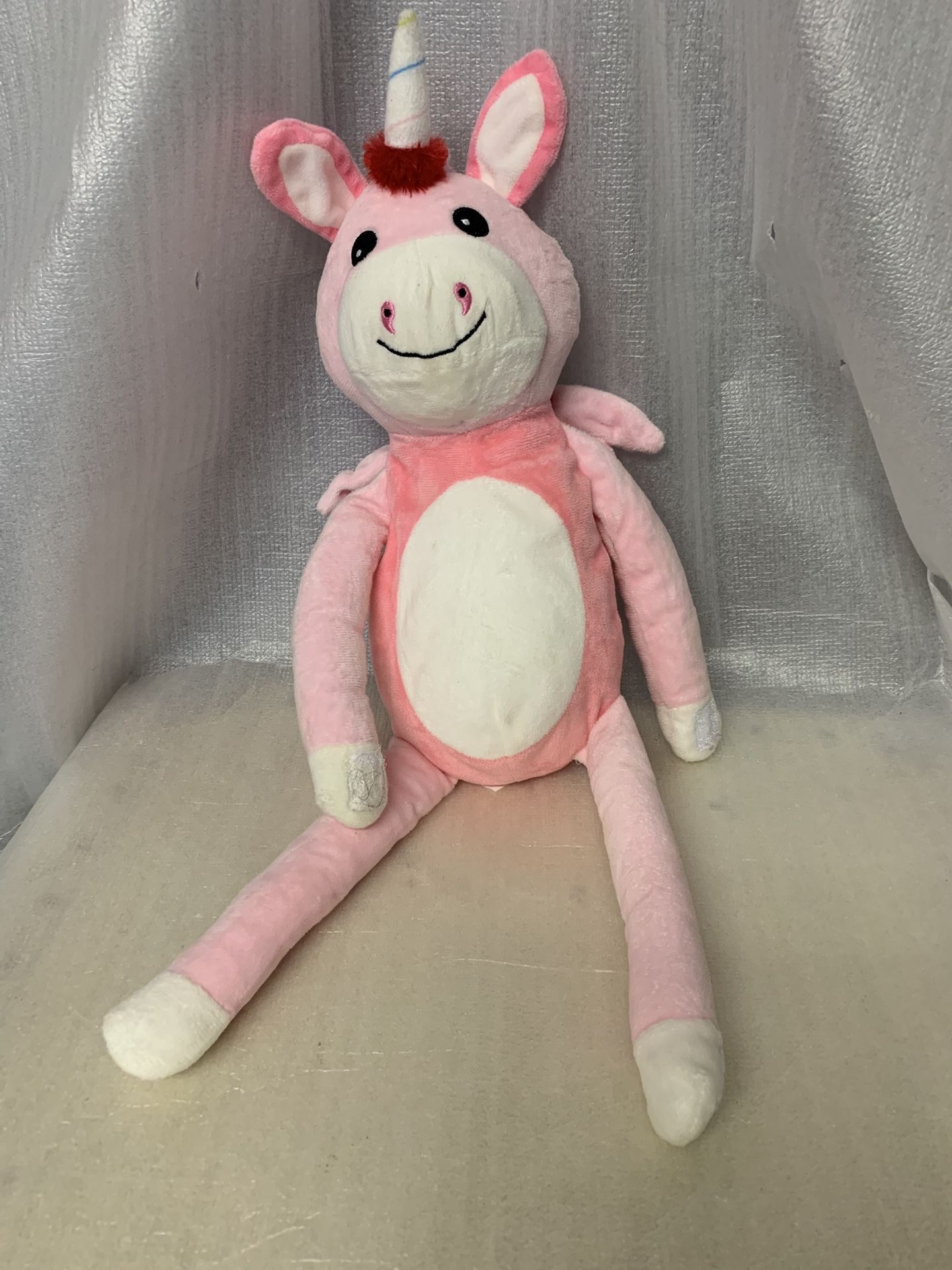 Squishy Pink Horse Plush 21” Long pink and white