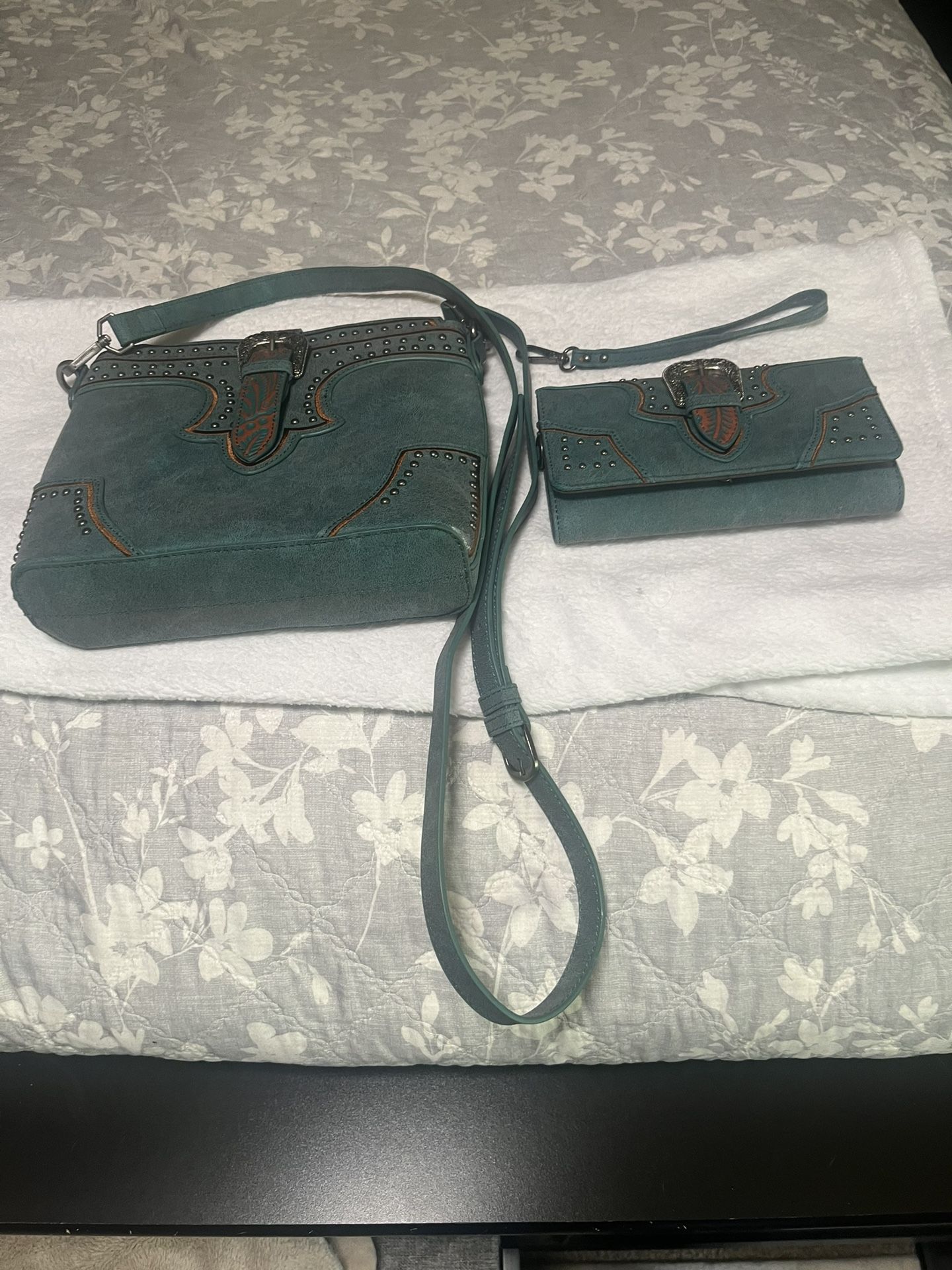I’m in Normandy Park, not Seattle. CROSSBODY BAG: Premium Material Design: Crafted from synthetic leather with antique patina silver floral buckles, silver studs, and stitch accents for a sophisticated, vintage-inspired aesthetic. Secure Organized Storage: Features a top zipper closure, an interior zippered pocket, and two compartments to safely organize essentials while on the go. Adjustable Comfort: Includes a detachable, adjustable crossbody strap (25"-28" drop) for customizable, comfortable wear across body types. Functional Versatility: Combines discreet concealed carry (hidden zippered pocket) with everyday practicality, blending security and style seamlessly. Durable Construction: Reinforced stitching and metallic hardware ensure long-lasting resilience against daily wear and tear. 10"(L) x 2.5"(W) x 9.5"(H) Interior Capacity: Medium WALLET: Premium Material Design: Made of synthetic leather with an antique silver floral buckle and studs on the front for a stylish, vintage-inspired aesthetic. Secure Closure System: Button closure ensures contents stay safely enclosed while maintaining easy access. Optimized Organization: Multiple interior pockets for ID, credit cards, and cash, plus a zippered back pocket for added storage versatility. Convertible Convenience: Single removable strap (Drop: 8.5") allows effortless transformation from a compact wallet to a chic wristlet for on-the-go adaptability. Durable Functional Build: Synthetic leather construction balances lightweight practicality with long-lasting resilience for everyday use. Discreet Accessibility: Strategically placed zippered compartments enable quick, secure access to essentials while maintaining a sleek profile. 7.5"(L) x 1.5"(W) x 4.2"(H)
