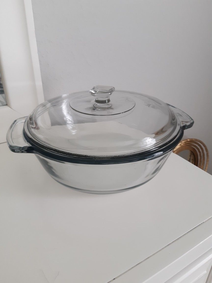 ANCHOR GLASS CASSEROLE WITH LID 2QT, NEVER USED