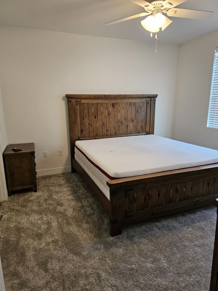 Hello! I’m moving soon and selling my bedroom furniture. All items are in fair condition and priced to move. ***Pickup required.*** Please message me for additional details Bedroom Set Includes: -King Size Bed -Bed frame -Headboard -Footboard -Mattress -Box spring -Dresser with mirror -2 Nightstands First come, first served. Cash Only.