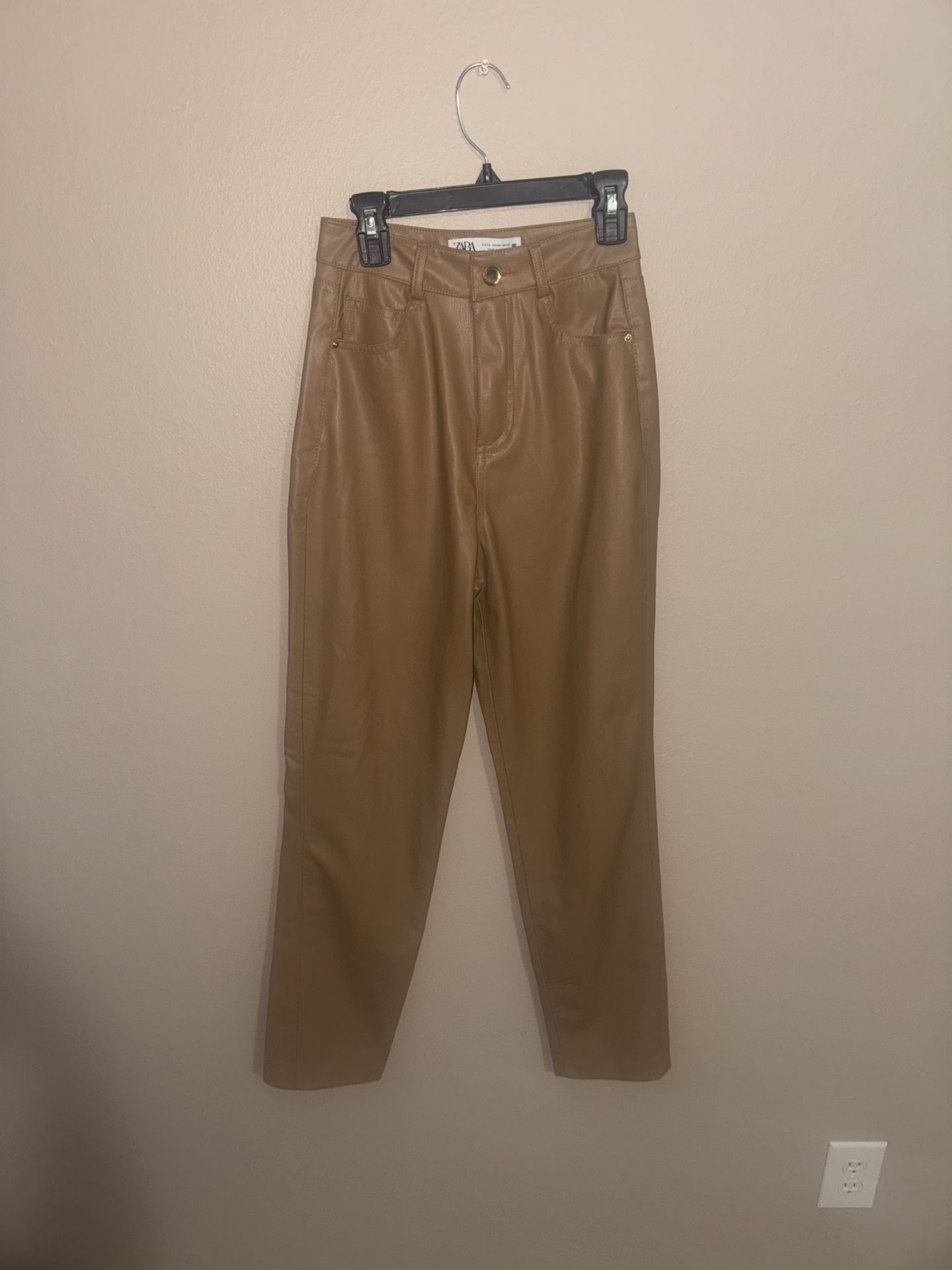 Super cute Zara Faux Leather pants in the color Tan! Grab these for a steal of a deal! These are NWOT