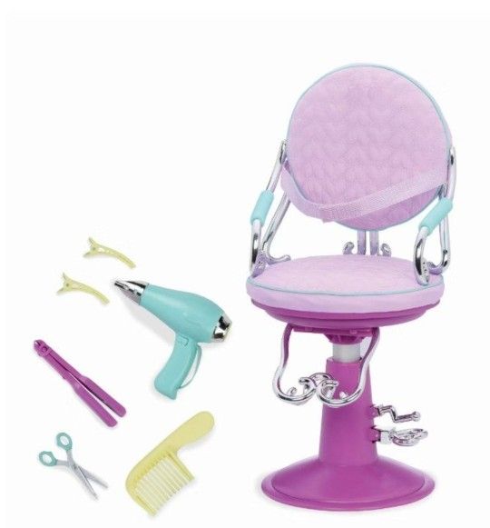 Our Generation American Girl Sitting Pretty Salon Chair Set Includes: salon chair; pretend flat iron, scissors, hair dryer with sounds, hair clips, and brush Smoke-Free House. Located in East Taunton, MA. Porch pick-up Available.