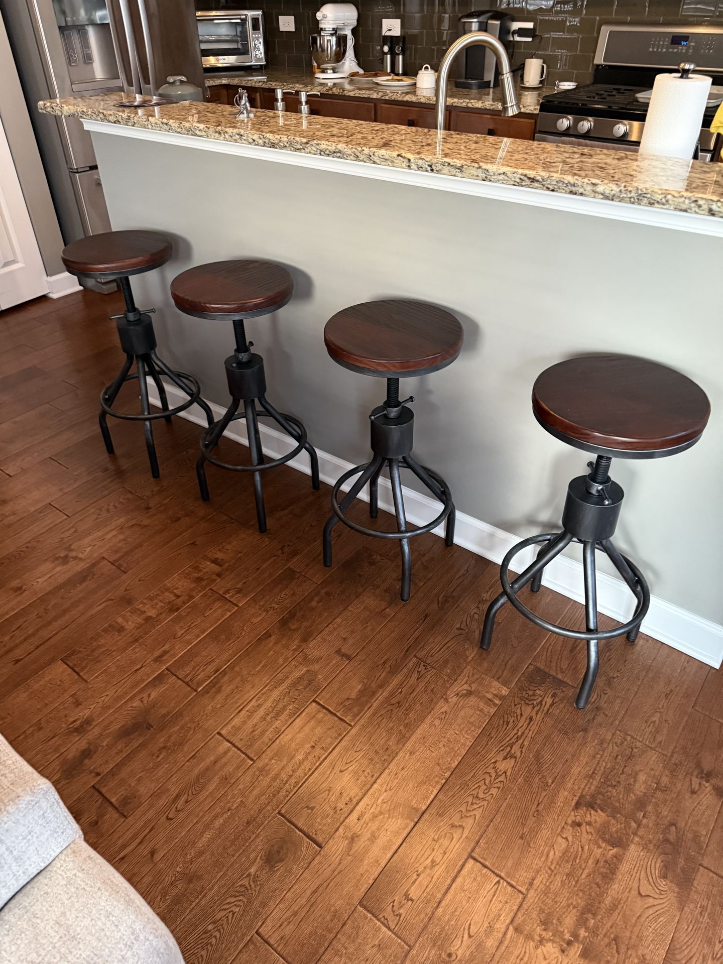 Like new bar stools adjustable from counter height to bar height. Very sturdy