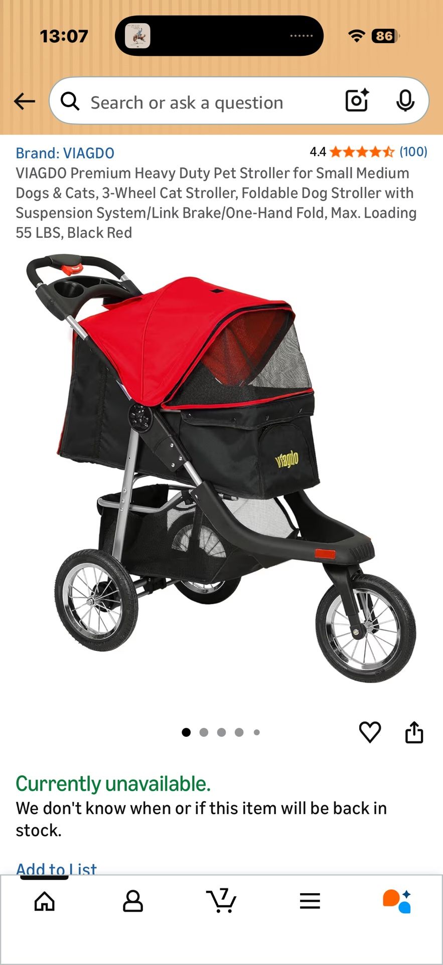 VIAGDO Premium Heavy Duty Pet Stroller for Small Medium Dogs & Cats, 3-Wheel Cat Stroller, Foldable Dog Stroller with Suspension System/Link Brake/One-Hand Fold, Max. Loading 55 LBS, Black Red
