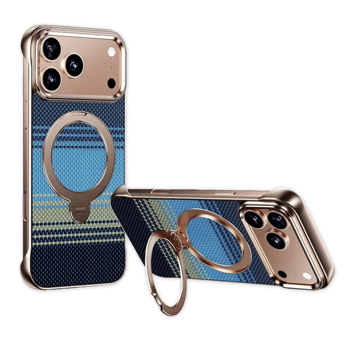 Phone Case for iPhone 17 Pro - Frameless Carbon Fiber with Stand, Magnetic Charging Compatible, Shock-Resistant and Wear-Resistant Protective Cover