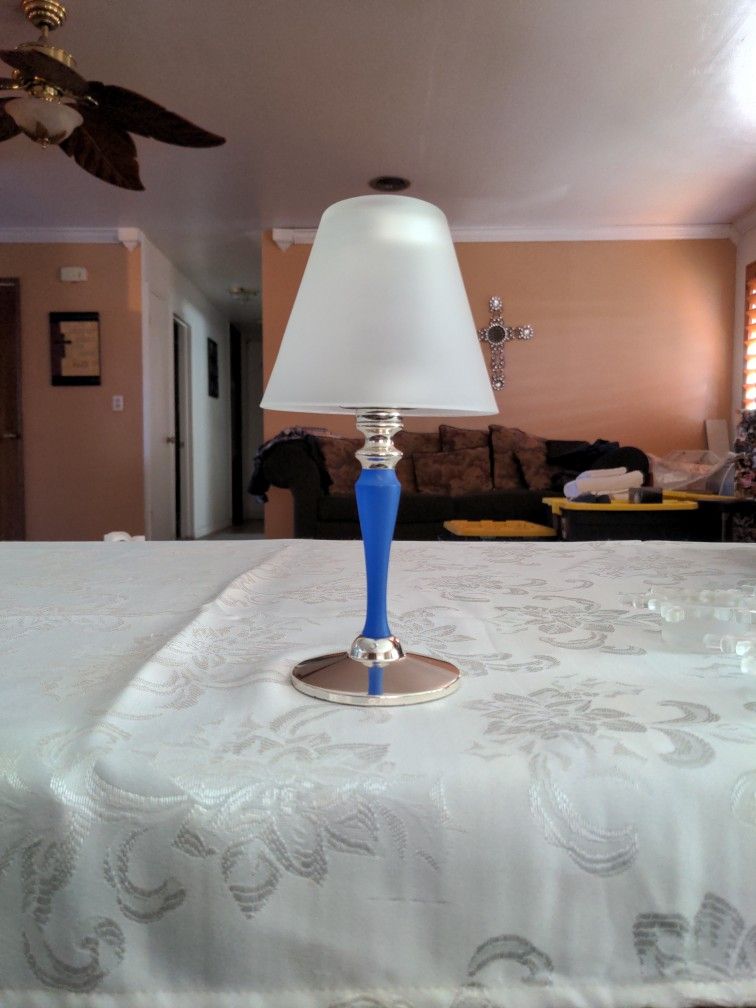 Partylite Tea Light Candle Holder Blue Stem W/ White Glass Frosted Shade Excelle