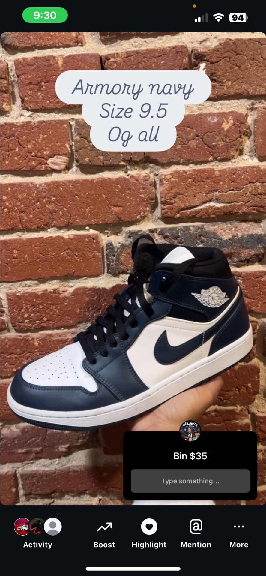 Jordan 1 Armory Size 9.5