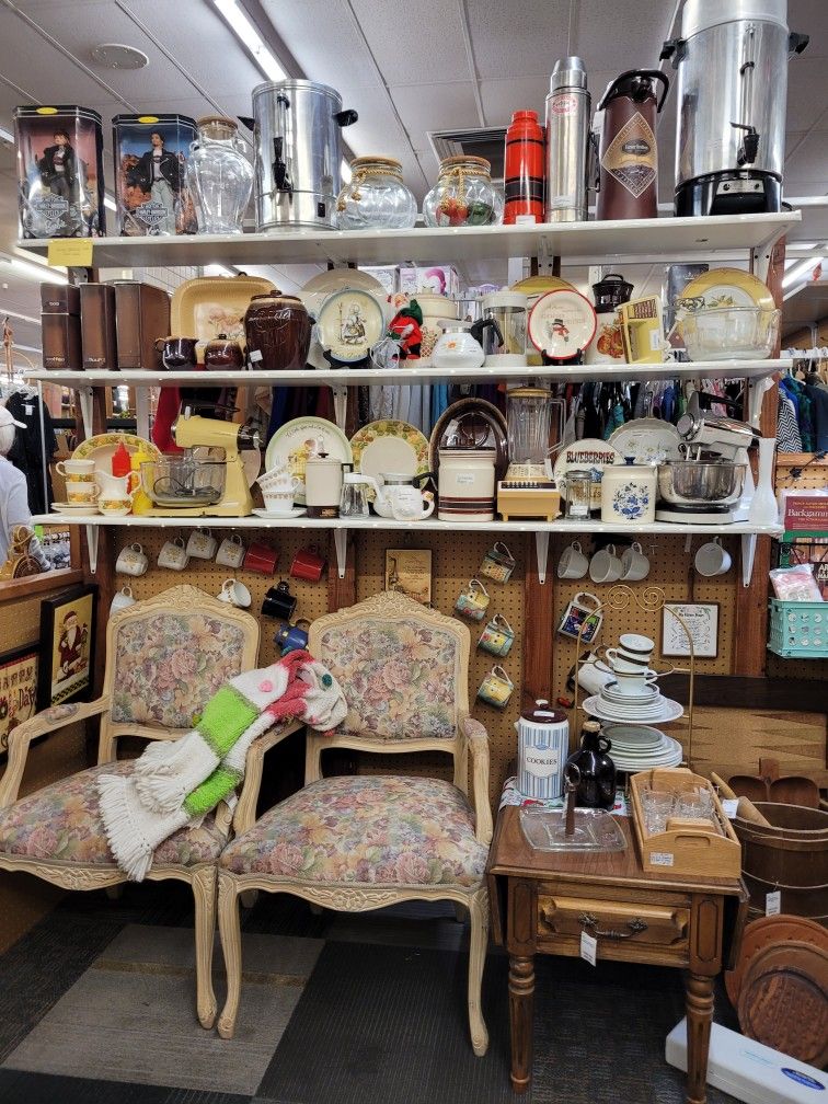 Lots of vintage pieces...Looks like my Mom's kitchen is what most folks say! Pyrex, Mc Coy, Corningware, Corelle, Sunbeam, 70's blenders, Treasure Craft, Metlox, California Poppy Trails, some Harley Barbies... to name a few! Aprons, afghans, purses, lots of glassware like Indiana glass and Fosteria, wood gameboards and more!! BOOTH number F12 at Call It New Call It Antique on the SW corner of Broadway and Dobson Rd. in Mesa, 1 mile East of the 101. Open 11am to 5pm every day! Also kitty corner is BOOTH number A10 for more to explore :)