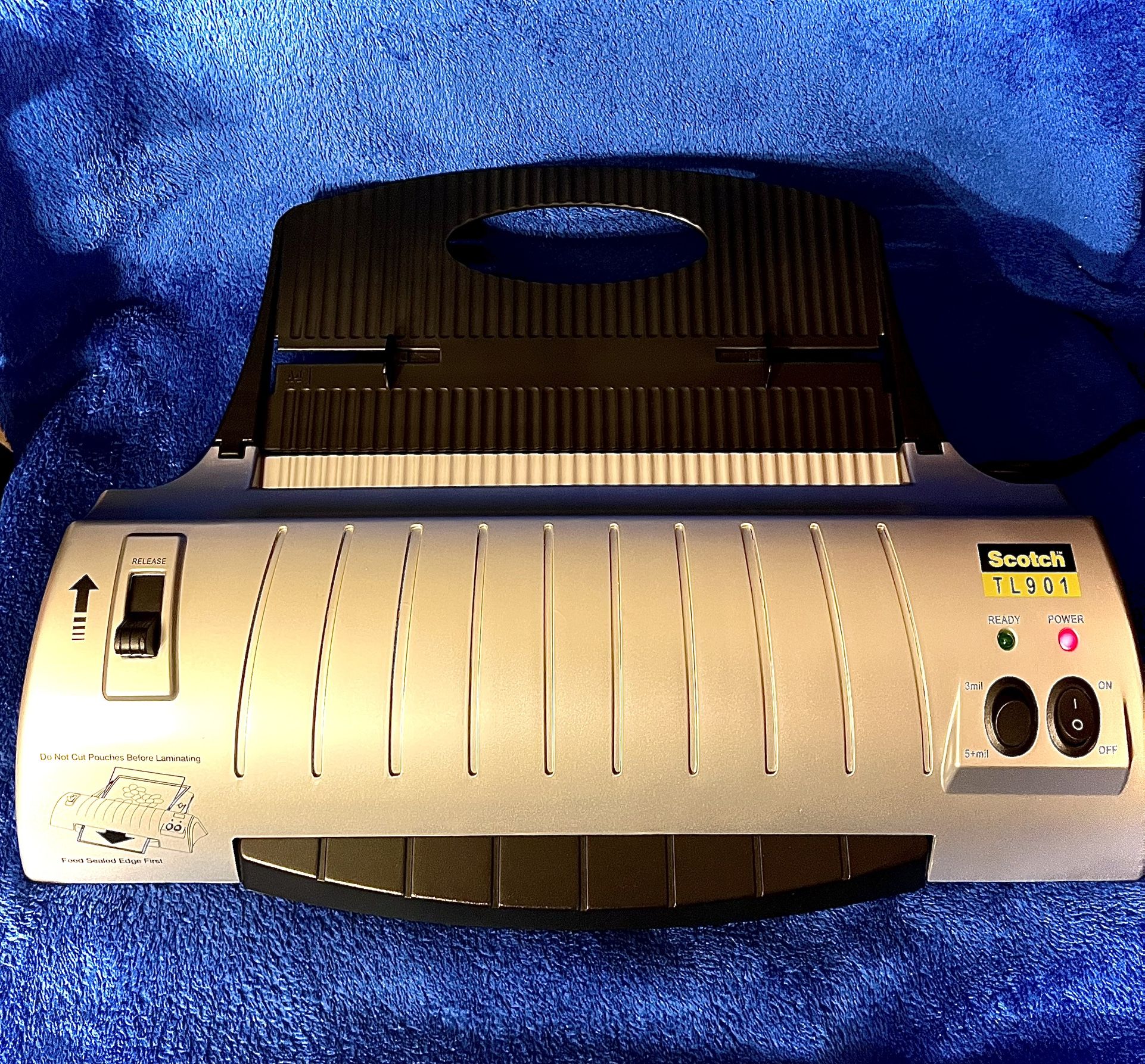 Open box -NEW all items are complete never used Professional Quality Scotch TL901 Thermal Laminator - Perfect for Home or Office This listing is for the reliable and user-friendly Scotch TL901 Thermal Laminator, designed to provide professional-quality lamination for documents, photos, and crafts up to 9 inches wide. Ideal for protecting important papers, creating durable educational materials, or enhancing presentations. Key Features & Benefits: * Model: Scotch TL901 * Max Width: Accommodates thermal laminating pouches up to 9 inches wide. * Dual Heat Settings: Features easy-to-use switches for both 3 mil (standard paper thickness) and 5+ mil (thicker, more rigid items like photos or card stock) pouches. * Jam Release Lever: Includes a handy jam release lever to safely clear misfed or stuck pouches, ensuring smooth operation. * Ready/Power Indicators: Clear lights to indicate when the machine is on (Power) and ready to begin lamination (Ready). * Voltage: 120V / 60Hz / 3A (Standard US Household Power).