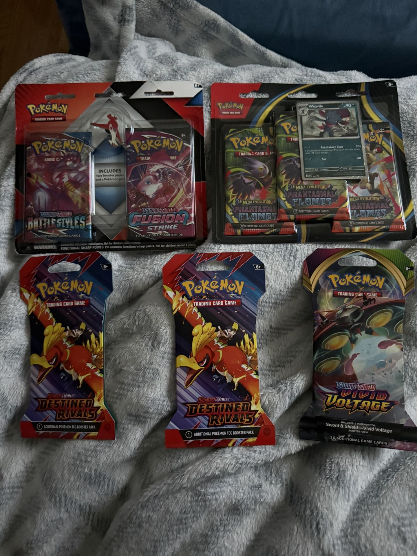 -3 pack blister phantasmal flames -vivid voltage blister -fusion strike and battle strikes 2 pack -2 destined rivals blisters shoot me offers don’t try to lowball also taking trades AT 80 PERCENT