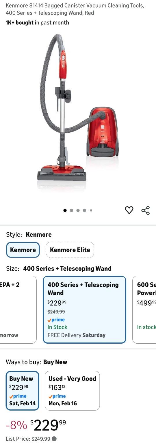 Kenmore 81414 Bagged Canister Vacuum Cleaning Tools, 400 Series + Telescoping Wand, Red