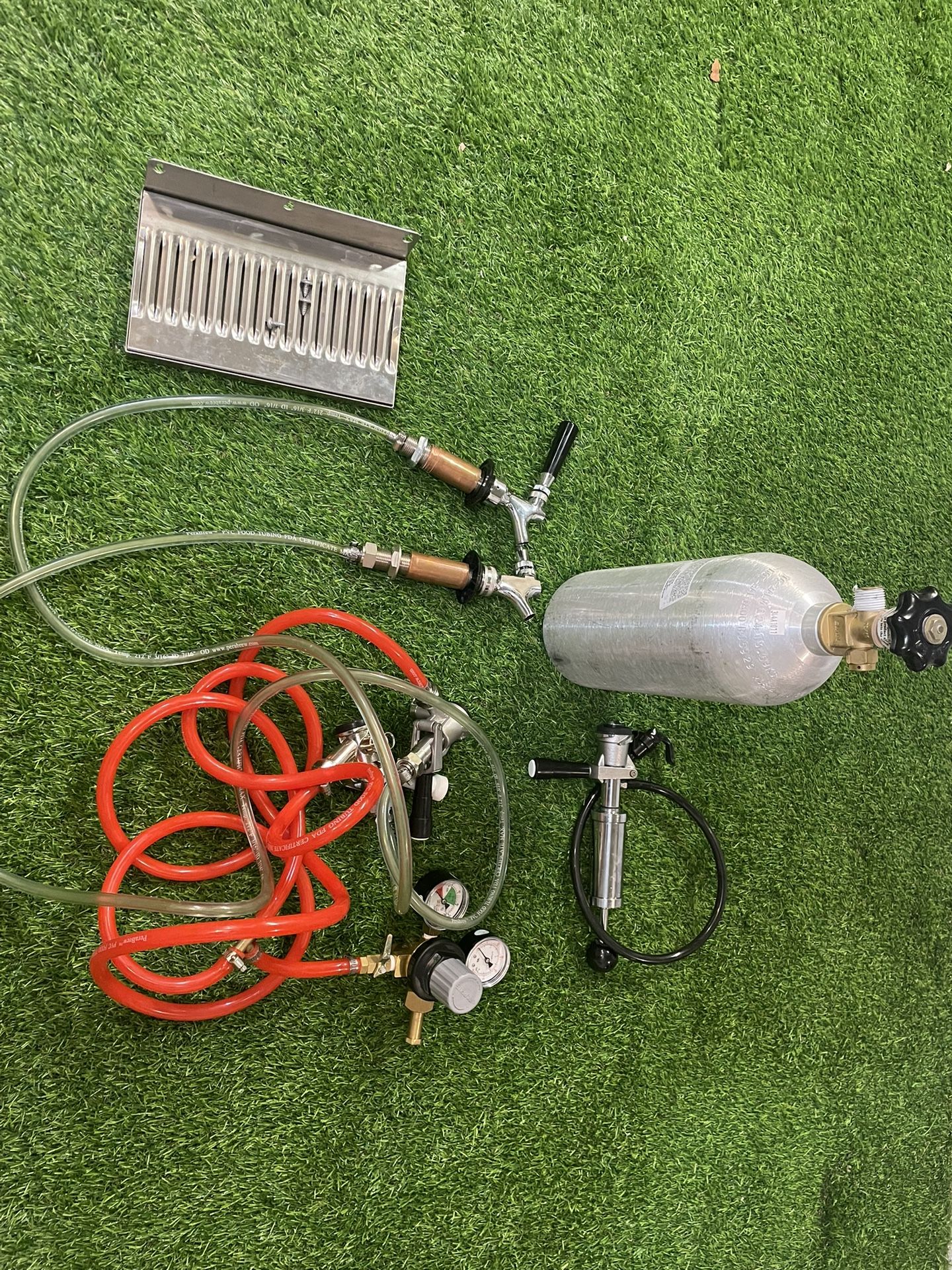 Selling my almost new CO2 double tap kegerator. Fridge stopped working so I’m selling. If you are handy and want the fridge for free to fix it and put the kegerator setup back in the fridge it’s all yours. Setup is: - 5 lb CO2 tank - Tank regulator gauge - Dual CO2 hose splitter and tubing already setup - 2x keg top CO2 taps - 1 manual keg tap - 2x pouring tap spouts - tap tubing attached - drip tray - Fridge (free) for pickup.