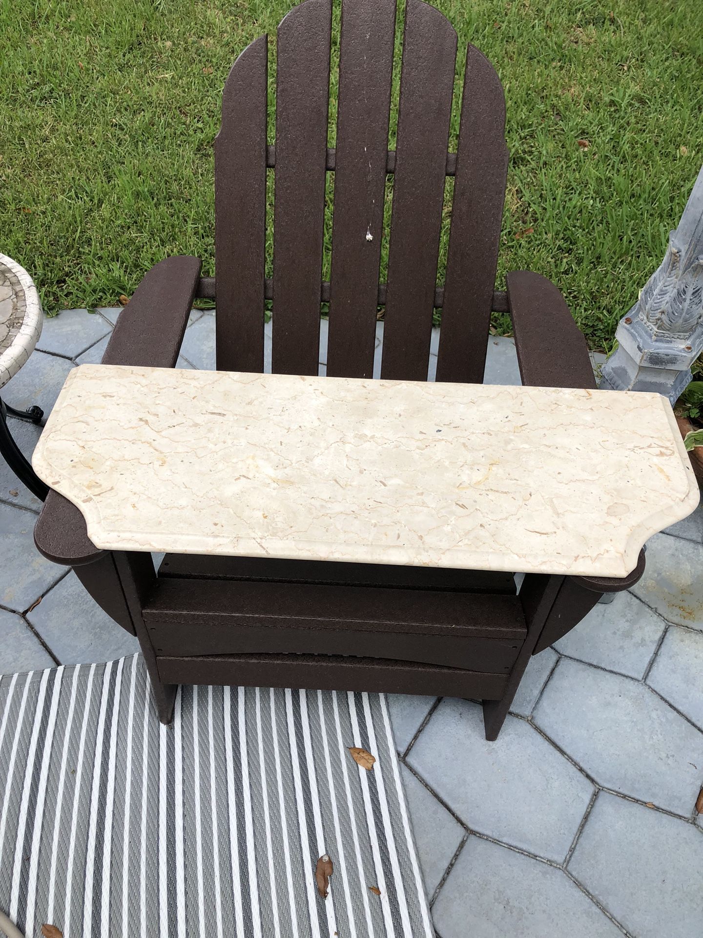 Marble fireplace hearth 36”x13”, 3/4” thick Creamy tan with brown accents Waterfall edge finished on 3 sides Front corner cutouts Perfect condition