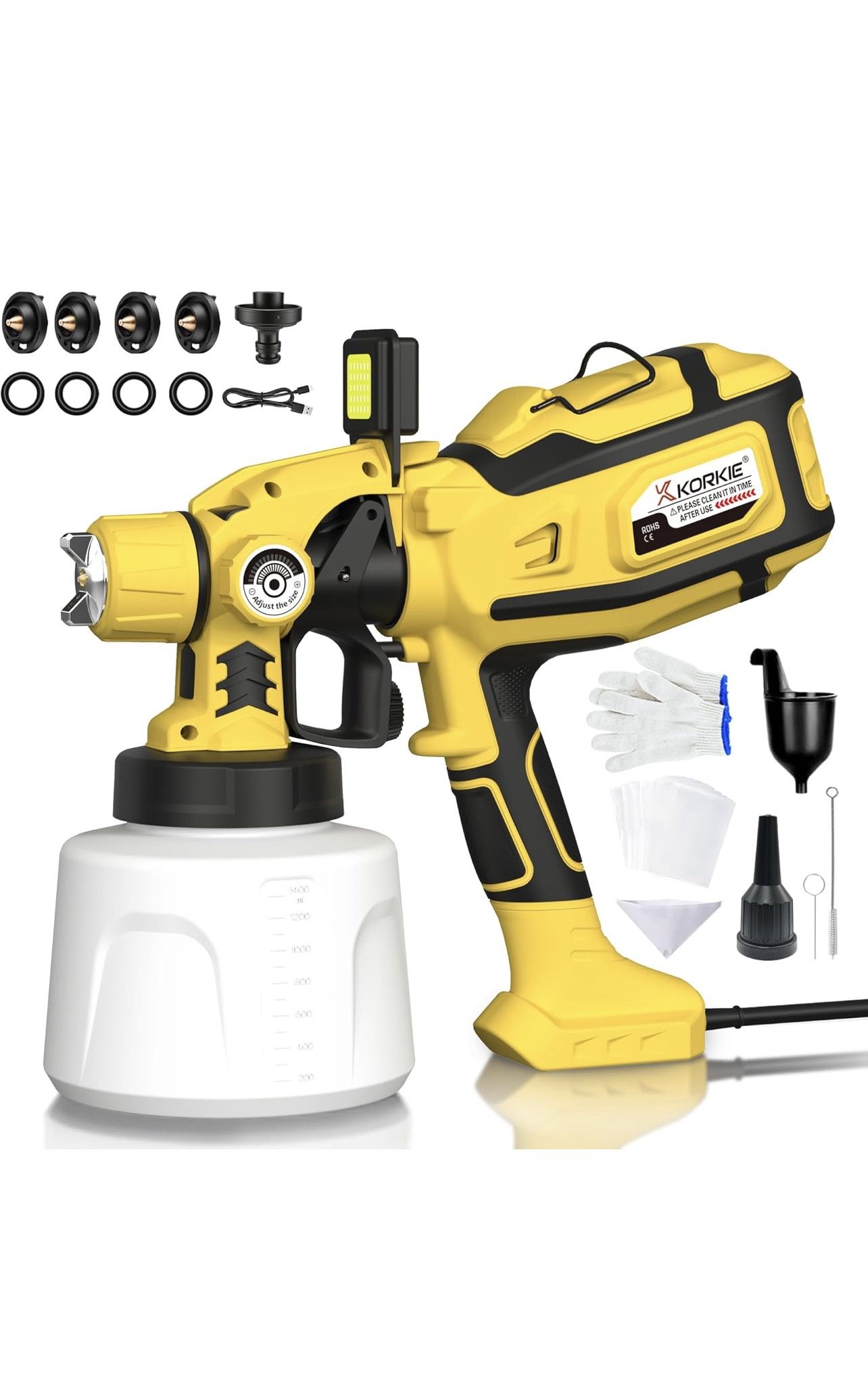 Pulverizador de pintura HVLP de 1250 W con 5 boquillas y 3 patrones de pulverización, control de flujo ajustable, contenedor de 47.3 fl oz y herramien
